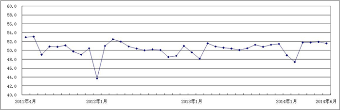 图1 2011年4月-2014年6月广东省重点企业PMI趋势图