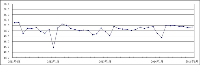 图1 2011年4月-2014年9月广东省重点企业PMI趋势图