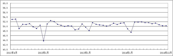 图1 2011年4月-2014年12月广东省重点企业PMI趋势图