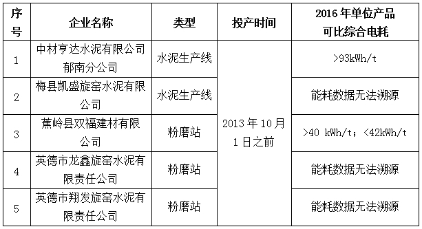 根据《国家发展改革委 工业和信息化部关于水泥企业用电实行阶梯电价政策有关问题的通知》(发改价格〔2016〕75号)要求,我委组织第三方机构对全省171家水泥生产企业开展了2016年产品可比综合电耗现场核查,并对核查结果提出异议的6家企业进行了现场复核。根据核查及复核结果,5家水泥企业产品可比综合电耗超过国家限额标准或能耗数据无法溯源,现将5家企业名单及其2016年单位产品可比综合电耗核查情况予以公布。