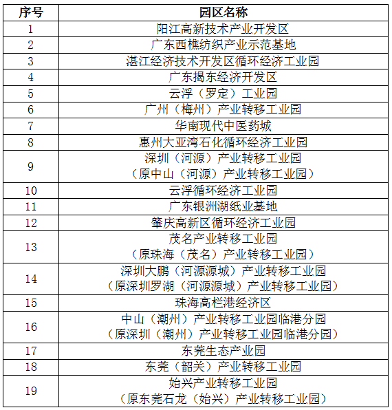 通过验收并保留“广东省循环经济工业园”称号园区名单