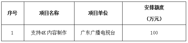 2018年省级促进经济发展专项资金(支持4K内容制作用途)项目计划表