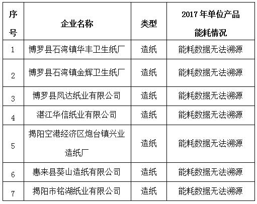 根据国家十六部门《关于利用综合标准依法依规推动落后产能退出的指导意见》(工信部联产业﹝2017﹞30号)、《广东省经济和信息化委等五部门转发关于利用综合标准依法依规推动落后产能退出的指导意见的通知》(粤经信产业函〔2017〕133号)要求,我厅对全省6家粗钢生产企业、168家水泥生产企业、3家乙烯生产企业、3家烧碱生产企业和175家造纸生产企业开展了2017年产品能耗限额现场节能监察,现将2017年单位产品能耗不达标应限期整改的7家企业名单予以公布。名单内企业应在《限期整改通知书》整改期限内完成整改;确需延长整改期限的,可向《限期整改通知书》发出单位提出不超过3个月的延期申请;逾期未整改或经整改仍未达标的,依法关停退出。