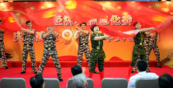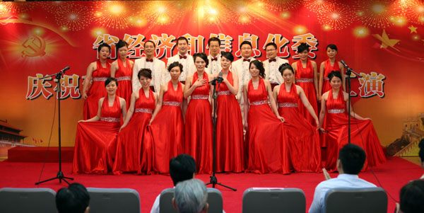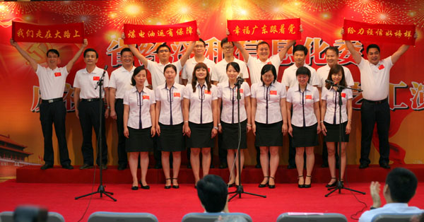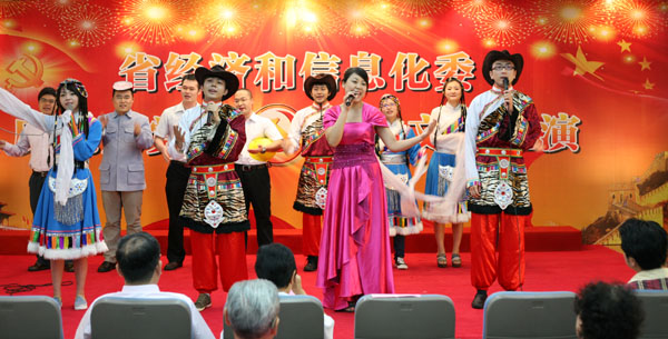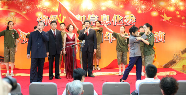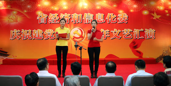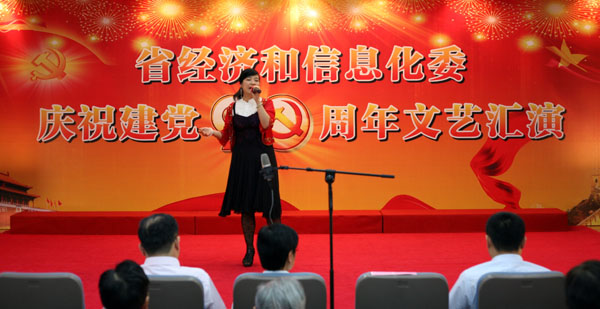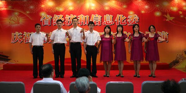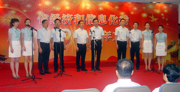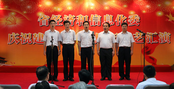七月的骄阳点燃澎湃的激情,鲜红的党旗铺展壮丽的画卷。7月22日下午,省经济和信息化委机关各处室、各直属(代管)单位全体干部职工,离退休老干部400余人,欢聚在12楼大会议室,举行庆祝建党90周年文艺汇演,用歌声和笑声,共同庆祝伟大的中国共产党90周年华诞。委机关各处室和各直属(代管)单位,以单独组队或联合组队的形式,共组成26支队伍登台表演。大家以丰富多彩的艺术形式宣传和歌颂了党的光辉历史及丰功伟绩,体现了感党恩、听党话、跟党走的主题,反映了经信人奋发向上的精神面貌。文艺演出极大激励了全体党员干部和职工,坚定信心,振奋精神,为加快转型升级,建设幸福广东而努力奋斗。