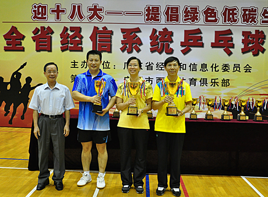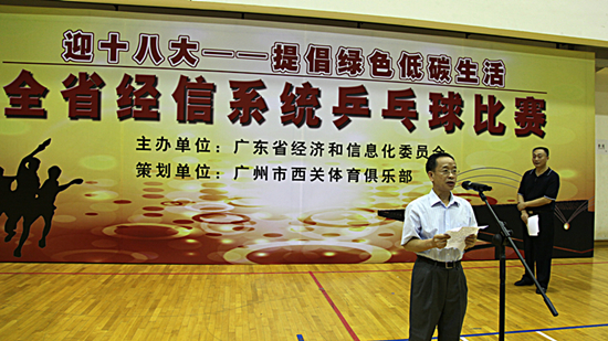 “迎十八大——提倡绿色低碳生活”全省经信系统乒乓球比赛得到了全省各地级以上市经济和信息化部门的大力支持和配合。此次比赛为团体赛(设男单、女单、男双三个单项)。赛程分两个阶段。第一阶段采用小组循环赛制。深圳市经贸信局、惠州市经信局、清远市经信局、揭阳市经信局、湛江市经信局、东莞市经信局、梅州市经信局、省经济和信息化委机关队等8支代表队在小组赛中胜出;第二阶段采用单淘汰赛制,争夺前3名。