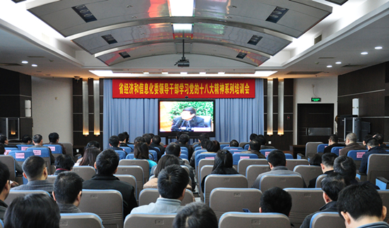 12月25日上午,“全省领导干部学习党的十八大精神培训”举行了第五场报告会,中共中央党校科学社会主义教研部主任王怀超同志作为主讲嘉宾作了《加强社会建设,保障和改善民生》的主题辅导报告,报告会由省委组织部副部长张辉同志主持。省经济和信息化委组织全体机关干部和直属(代管)单位中层以上领导通过视频直播同步参加了培训。