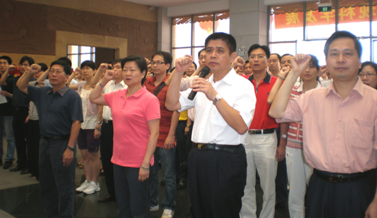 受党组书记、主任杨建初同志委托,省经贸委副主任李向明、毕志坚,纪检组长龚明栋,副巡视员曾健,带领机关各处室及中博会事务局、机关服务中心、信息中心200多位党员和干部职工,参加了这次“七一”活动。