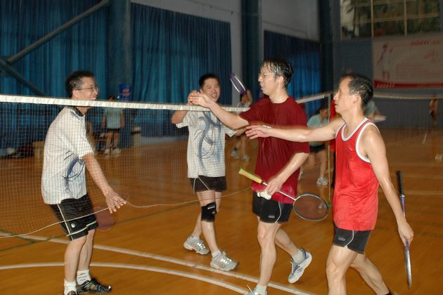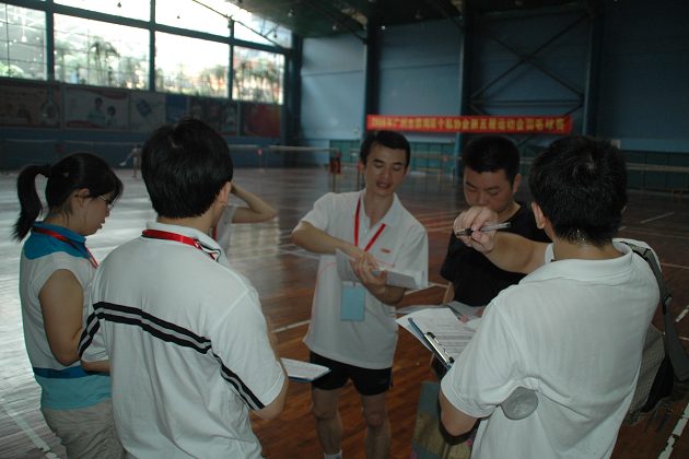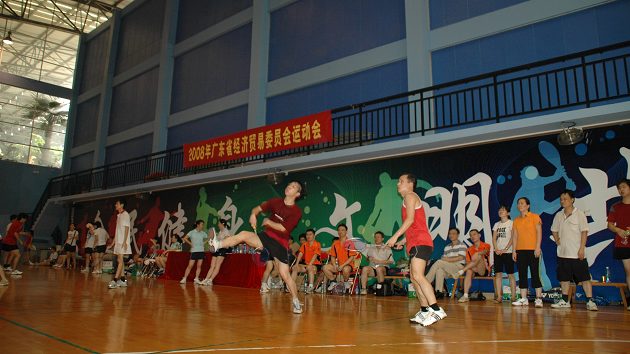 7月27日,省经贸委运动会羽毛球联赛在广州西关体育俱乐部开赛。来自委机关及有关单位十一支队伍共136人参加了八强前的比赛。