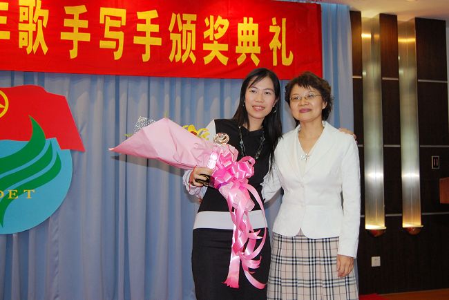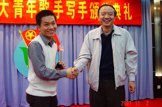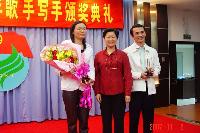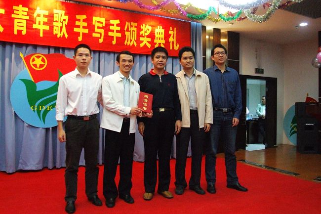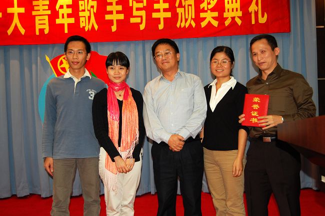 随后,在激扬的乐声中,颁奖嘉宾依次为十大青年歌手写手和课题调研前三名颁发奖杯、证书,十大青年歌手演绎了经典的获奖歌曲,十大青年写手通过朗诵、乐器演奏、演唱等多姿多彩的方式演绎了获奖文章,三大课题调研组发表了获奖感言。颁奖典礼播放了“月圆南海仔,情满新农村”志愿者活动片段,并为各团支部其他获奖人员举行集体颁奖仪式,共有68名歌手、134名征文写手、12个课题调研组63名成员受到表彰。最后,颁奖典礼在十大青年歌手合唱《同一首歌》中走向高潮。