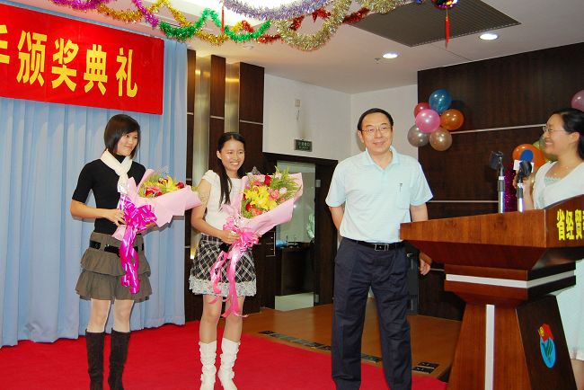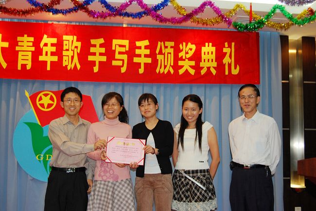颁奖典礼在毕志坚纪检组长热情洋溢的致词中拉开帷幕。毕组长指出,团委今年推出了“月圆南海仔,情满新农村”志愿者活动、“感悟青春,感动经贸”歌手大赛、征文比赛和课题调研“四大品牌”,紧紧围绕委的中心工作开展,将青年团员的热情激发出来,凝聚成了一股强大的力量,取得硕果累累,希望青年团员继续奋发向上,取得更好的成绩。