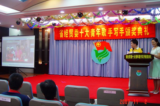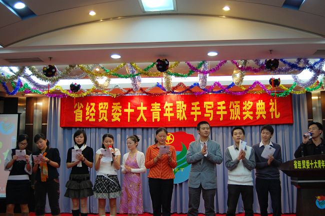 感悟青春,感动经贸。整场典礼笑声和掌声弥漫,活力和真情显现,为大家送上了一场文化盛宴。刘焕泉副主任现场即兴作了一首小诗:“笑声、歌声、朗读声,声声充满活力;激情、友情、经贸情,情情感悟青春。”团省委常委兼省直团工委书记陈再葵在颁奖时说,他今天最大的感受就是“感动”,感动于省经贸委党组和领导对团工作的理解和支持,感动于省经贸委团委活动的丰富多彩和题材新颖,感动于省经贸委团员青年对团工作的辛勤努力。