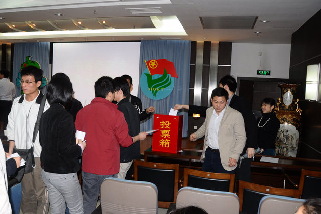 选举大会分为两个阶段。第一阶段是团委书记和副书记的选举,采取搭档参选的方式。经过报名和资格审查,谢斌(法规处)和樊丽雅(综合处)、肖振宇(人事培训处)和杨冬梅(省中小企业局)两对候选人参加竞选。两对候选人先后上台发表精彩的竞选演讲,然后抽签决定辩论题目正方反方,展开激烈的辩论。最后,经过全体团员投票,谢斌和樊丽雅以63票比40票的结果胜出。第二阶段由新当选的团委书记提名8名候选人角逐5名团委委员。8名候选人发表竞选演讲,经过团员代表投票,肖振宇、陈科(工业处)、梅家春(省电子所)、谭俊(信息中心)、张露璐(杂志社)等5人当选。新一届团委将于4月17日正式任职。