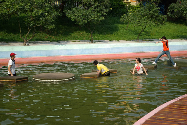 队员们正在“强渡亚马逊河流”