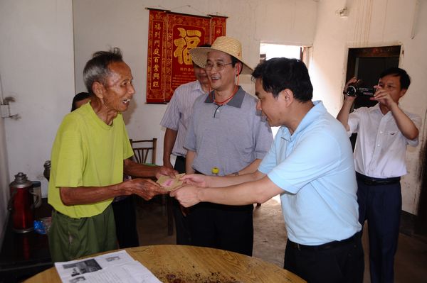 为弘扬扶贫济困优良传统,推进我委扶贫开发“双到”工作,在建党90周年之际,7月7日我委党组副书记、副主任邹生,副巡视员陆建生、甘广南,党组成员、总工程师叶元龄带领我委所有处室及直属单位负责人近60余人赴河源市龙川县老隆镇红桥村开展访贫慰问活动,为78户贫困户以及村里的8个七十岁以上老党员、1位抗美援朝老战士、6位五保户和3位孤儿送上慰问金和慰问品。