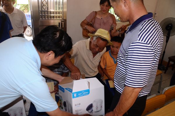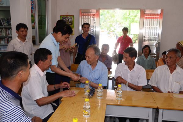 邹生副主任一行亲自到抗美援朝老战士刘海源和五保户刘水泉家看望并送上慰问金、电饭锅和节日的问候,随后还慰问了七十岁以上老党员、五保户和孤儿,并和老党员亲切座谈,感谢老党员们为红桥村的发展所做的杰出贡献。邹生副主任一行实地考察了村口标志、蔬菜种植示范基地、村委会广场、红桥经信小学、大塅三队其才坑生猪养殖基地等帮扶项目,为我委资助全新装修的村卫生站揭牌,同时为村里捐赠了一批价值一万多元的常用药品。
