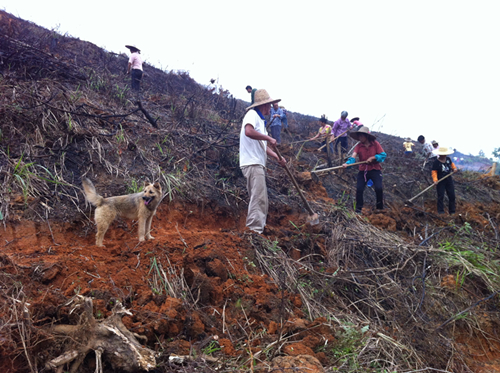 贫困户上山连片种植油茶