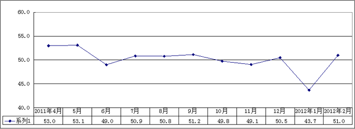 图1 2011年4月-2012年2月广东省重点企业PMI趋势图