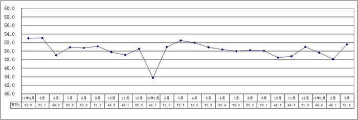 图1 2011年4月-2013年3月广东省重点企业PMI趋势图