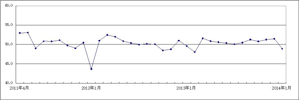 图1 2011年4月-2014年1月广东省重点企业PMI趋势图