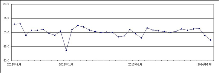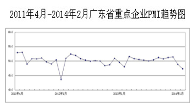 图1 2011年4月-2014年2月广东省重点企业PMI趋势图