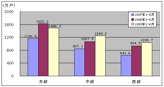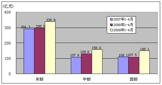 2009年1-4月,中、西部地区电信固定资产投资比上年同期分别增长21.1%、37.8%,明显高于东部地区的14.7%。