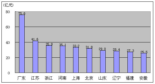 图12. 2009年1-4月电信主营业务收入排名前十名的省份