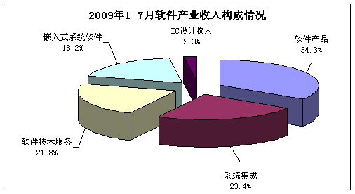 1-7月,共完成软件产品收入1760.8亿元,占软件产业总收入的34.3%,同比增长21.6%,增速比去年同期低9.6个百分点。