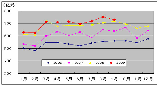 图3. 2006-2009年移动电话用户各月净增比较