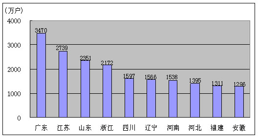 2.固定电话用户排名前十名的省份