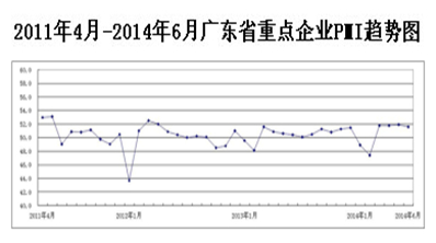 图1 2011年4月-2014年6月广东省重点企业PMI趋势图