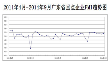 图1 2011年4月-2014年9月广东省重点企业PMI趋势图