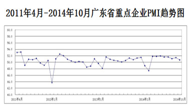 图1 2011年4月-2014年10月广东省重点企业PMI趋势图
