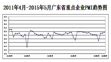 图1 2011年4月-2015年5月广东省重点企业PMI趋势图