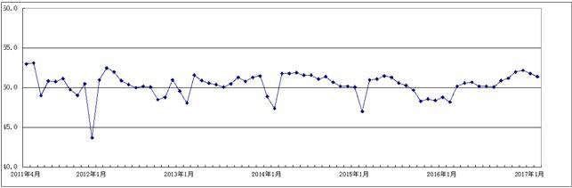 图1 2011年4月-2017年2月广东省重点企业PMI趋势图