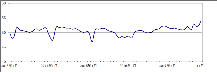 图1 2013年1月-2017年11月广东省制造业PMI趋势图