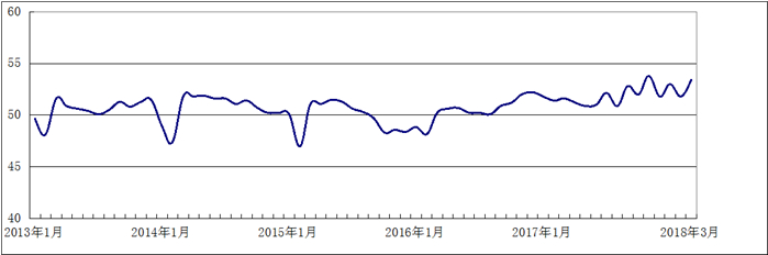 图1 2013年1月-2018年3月广东省制造业PMI趋势图