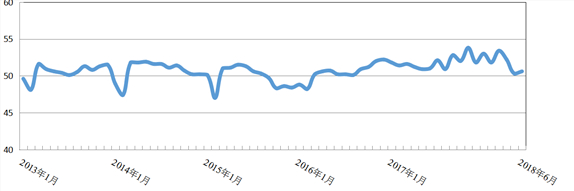 图1 2013年1月-2018年6月广东省制造业PMI趋势图