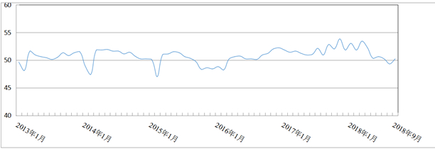 图1 2013年1月-2018年9月广东省制造业PMI趋势图