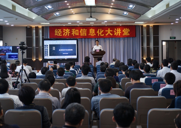 4月27日,省经济和信息化委举办2015年“经济和信息化大讲堂”培训讲座第2讲,题目为“全球经济与互联网”。本次培训讲座邀请阿里巴巴集团副总裁胡晓明主讲,委副主任李心主持。委机关全体和委属单位中层以上干部参加了本次培训,各地级以上市和顺德区经济和信息化主管部门组织本部门、本地区有关人员通过视频直播形式收看。