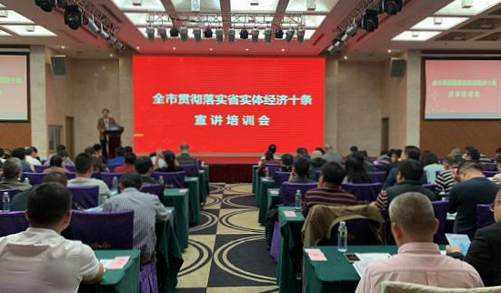 宣讲会上,湛江市发改、经信、人社、国土、住建、工商、税务、银监等市直部门代表组成的宣讲团,围绕“实体经济十条”政策措施作了深入解读,包括降低企业税收、用地、社会保险、用电、运输、融资、交易成本,支持工业企业盘活土地资源提高利用率、支持培育制造业新兴支柱产业、支持企业开展技术改造等方面内容。会议现场还发放了“实体经济十条”宣讲培训资料。