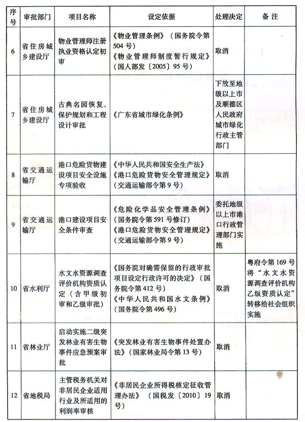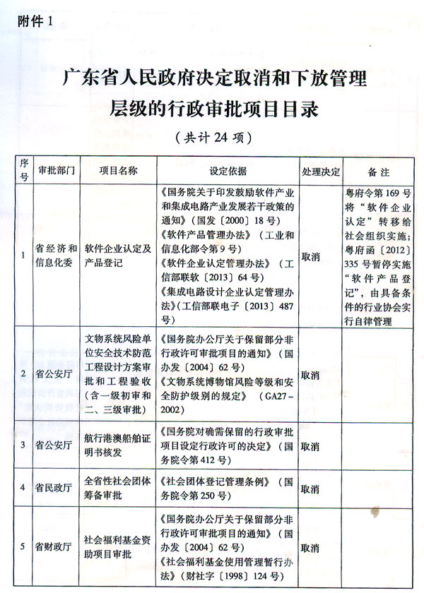 附件:1.广东省人民政府决定取消和下放管理层级的行政审批项目目录(共计24项)
