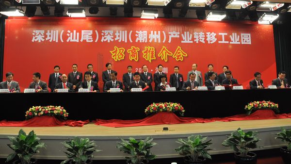 12月13日,姚德洪总经济师应邀出席深圳、汕尾、潮州三市在深圳联合举办的“深圳(汕尾)、深圳(潮州)产业转移工业园招商推介会”并为大会致辞。深圳市袁宝成副市长,汕尾市戎铁文书记、郑雁雄市长,潮州市骆文智书记,三市相关领导同志和相关部门负责人,深圳(汕尾)、深圳(潮州)产业转移工业园负责人及企业届、新闻界代表约400人参加了招商推介会。