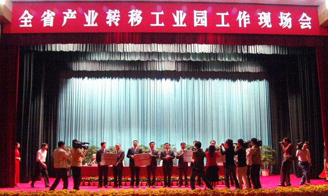 会议指出,联手推进产业转移工业园建设,是省委、省政府全面落实科学发展观、促进区域协调发展的重大战略决策。两年多来,全省各地、各有关部门不断探索实践,抢机遇、抓落实、促发展,形成了省里支持、地方自愿、上下联动、优势互补、市场运作、互利互惠的产业转移新模式,产业转移工业园建设取得阶段性重大进展。到目前为止,省财政已按有关规定拨付补助资金3.3亿元,引导社会投资6.25亿元支持产业转移工业园外部设施建设。目前,已有广州、深圳、佛山、东莞、中山等5个珠三角市与韶关、梅州、河源、惠州、肇庆、湛江、茂名、阳江、云浮等9个山区和东西两翼地级市在原经中央和省批准的开发区、高新区中共建产业转移工业园,签订入园投资意向项目(企业)287个,协议投资179.8亿元。据测算,这些产业转移工业园按规划全部建成投产后,年产值可达2600亿元,相当于2005年山区及东西两翼14个市规模以上工业的42.7%。