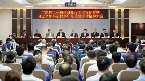 会议要求,全体党员干部要深入学习,深刻领会习近平总书记视察广东重要讲话的重大意义、丰富内涵和精神实质。要学以致用,自觉运用习近平总书记重要讲话精神指导做好当前和今后一个时期全省工业和信息化工作:一是谋划深化改革开放新举措,推动粤港澳大湾区产业发展,强化工业和信息化产业主管部门责任担当,加大“放管服”力度,营造良好营商环境;二是切实推动高质量发展。大力降低实体经济成本,加大对民营经济、中小企业发展的支持,构建现代产业体系,推动制造业加速向数字化、网络化、智能化发展;三是谋划提高发展平衡性和协调性的新措施,推进珠江口东西两岸产业融合发展,推动粤东粤西打造一批大型工业园区,加快推进乡村信息基础设施建设;四是扎实加强党的领导和党的建设,旗帜鲜明讲政治,加强意识形态工作,贯彻落实新时代党的组织路线,加强基层党组织建设,持之以恒推进作风建设。要持续兴起学习宣传贯彻热潮,确保学习贯彻习近平总书记重要讲话精神取得扎实成效。