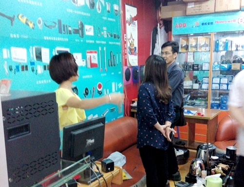 考前,中山市无线电管理办公室工作人员在检查电子市场