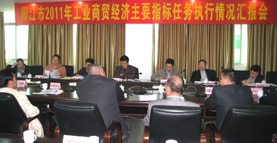 阳江市科工信局、阳江市商务局向督查组汇报了2011年1-11月阳江市工业商贸和信息化经济发展情况,重点介绍了阳江市工业投资指标、工业增加值指标、节能指标、社会消费品零售总额等指标任务完成情况和政策措施落实情况、广东大型系列招商活动(国内知名民企)招商项目落实情况、存在问题和有关建议以及下一步工作措施等。