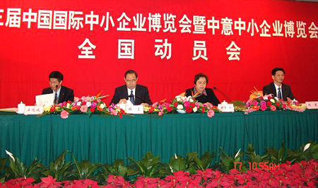欧新黔副主任对举办第三届中博会作了动员报告。她强调,本届中博会是在前两届中博会成功举办的基础上,推动实施“中小企业成长工程”、加快促进中小企业实施“走出去”战略的具体措施和实际行动。本届中博会是中博会正式迈向国际化的重要里程碑,第三届中博会突出“中意合作”这一亮点的同时,努力为世界各地中小企业打造展示、交易、交流、合作的国际化平台。欧副主任对办好中博会提出了六点具体要求,她希望全国各地共同努力,在前两届中博会的基础上,进一步坚定办好中博会的信心和决心,不断探索,不断完善,不断提高,把第三届中博会办出水平,办出特色,办出成效,办出品牌。