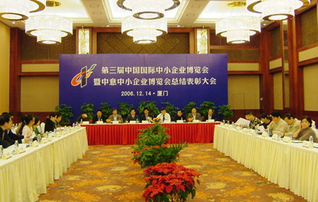 会上,广东省人民政府副秘书长林英代表中博会组委会向大会做了总结讲话。他指出,通过各省(区、市、兵团)的共同努力,第三届中博会的成功举办打响了中博会“国际展”的品牌,为广大小企业的发展特别是中意中小企业间的交流合作搭建了良好的平台。他强调,党中央、国务院领导的亲切关怀和支持,是中博会成功举办的强大动力,是第三届中博会成功举办的重要政治保障。国家部委的鼎力支持和悉心指导,保证了第三届中博会各项筹备工作的顺利推进和大会的圆满成功。各省(区、市、兵团)中小企业主管部门及有关单位的通力合作和密切配合,奠定了第三届中博会成功的坚实基础。他强调,在认真总结第三届中博会成功经验的基础上,要继续认真学习、领会和贯彻温家宝总理的重要指示精神,早研究、早启动、早部署第四届中博会的筹备工作,力争第四届中博会办出特色、办出水平、办出实效、办出品牌,更上新台阶。