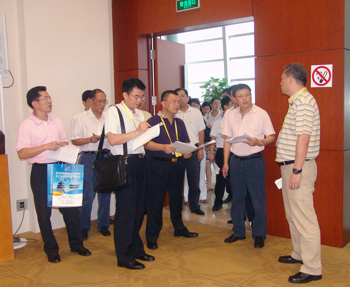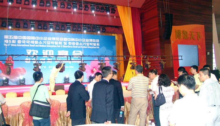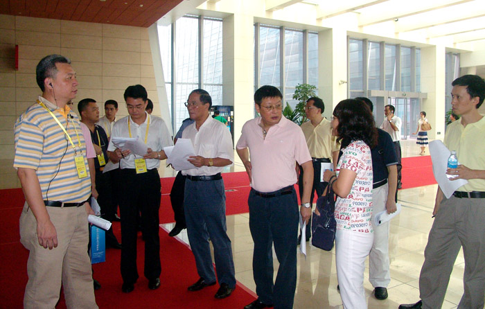 9月20日,中博会组委会秘书处主任、省经贸委主任杨建初现场踩点检查第五届中博会欢迎晚宴和开幕式等重要活动的准备情况。省府办公厅、省公安厅、省文化厅等有关部门的相关业务处室及组委会秘书处各部门负责人陪同检查,并即场落实有关筹备工作。
