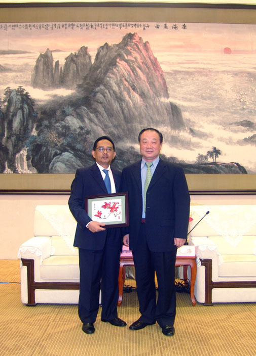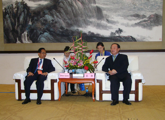 21日下午,副省长宋海在白云国际会议中心会见了前来参加中博会的印尼投资协调署副主席达玛万·迪亚朱斯曼一行。省经贸委副主任李向明参加了会见。